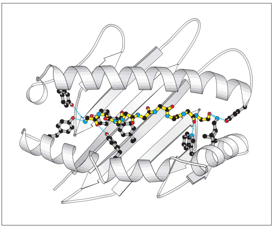 MHC class I molecules interact with the backbone of a bound peptide, through hydrogen bonds and ionic interactions at each end of the peptide. Therefore these invariant ends are thought to be the main stabilising contacts for the pMHC complexes.